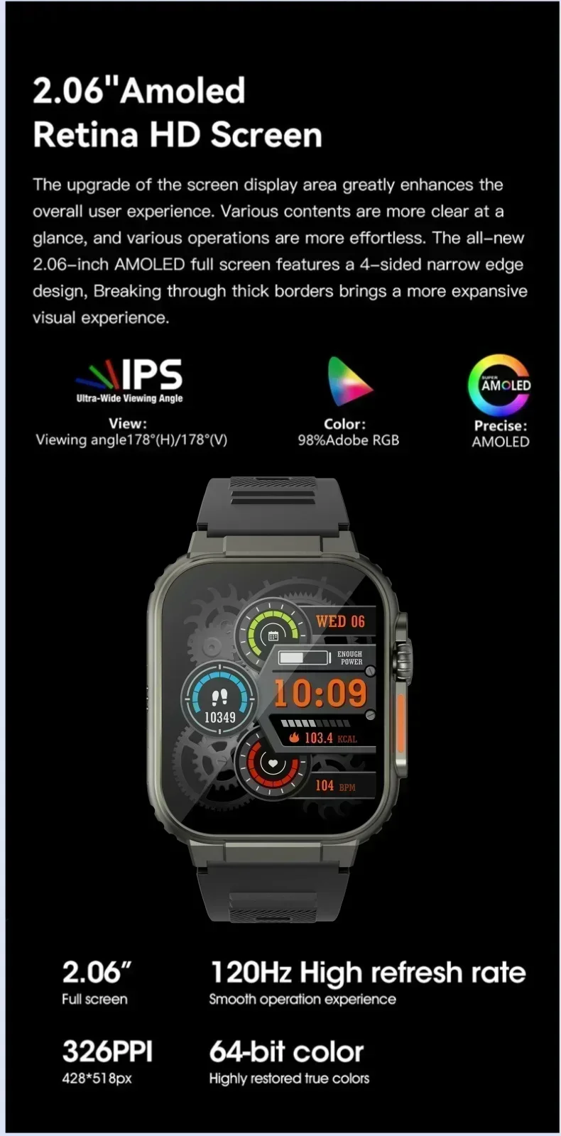 3, 2.2 inch Amoled HD large screen, ultra-low power consumption, extremely narrow frame, ultra-high screen ratio, different visual enjoyment