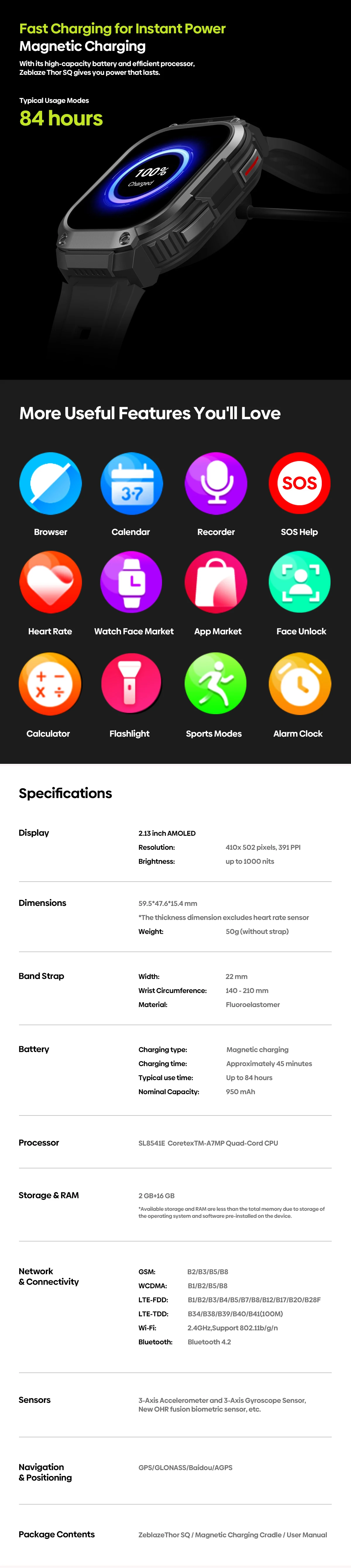 With its high-capacity battery and efficient processor, Zeblaze Thor SQ gives you power that lasts.